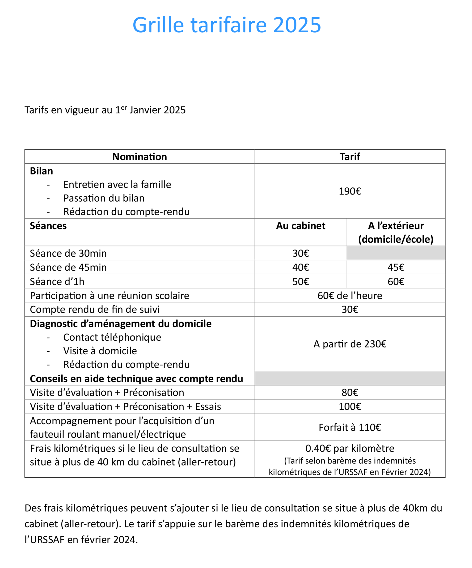 Possibilité de prise en charge de séances en ergothérapie : Cliquez-ici pour en savoir plus